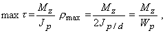 где Wр - момент сопротивления при кручении или полярный момент сопротивления