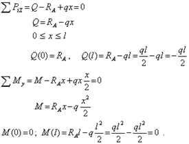 На основании полученных значений строятся эпюры поперечных сил (рис.1, г) и внутренних изгибающих моментов (рис.1, д). Как следует из