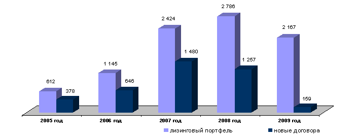 Диаграмма 1. Показатели деятельности компании «ПН-Лизинг» 2005 - 2009 г.г., млн. руб. [21].