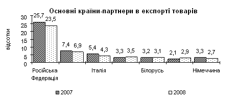 Рис. 1.2 Основні країни-партнери в експорті товарів