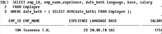 4.2) Вивести данні найстаршого працівника.