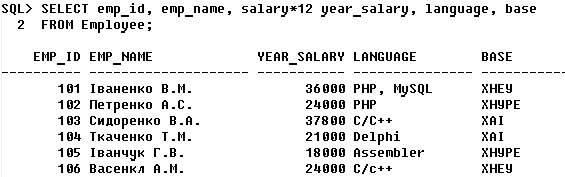4.1) Вивести розміри річних окладів працівників.