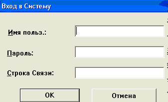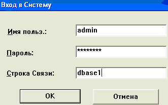 Рис. 9.1 Вікно для входу до бази даних Після цього треба ввести ім’я, власний пароль та шлях до бази даних, які повинні бути видані адміністратором бази даних. 9.2 Екранні форми В попередньому пункті було надано вікно для входу в систему. Після того, як користувач введе необхідні данні, вікно може мати такий вигляд