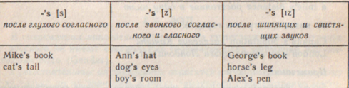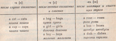Существительные во множественном числе с окончанием -s (-es) в притяжательном падеже получают только апостроф ('), и на произношении это не отражается. boys мальчики — boys books книги мальчиков Существительные во множественном числе, не имеющие окончания -s (-еs), в притяжательном падеже получают окончание -s', которое произносится согласно правилам (см. таблицу). Притяжательный падеж в основном передает различные отношения принадлежности: Johns coat пальто Джона Marys cat кошка Марии Кроме того, притяжательный падеж передает: а) отношение части и целого: horses legs ноги лошади б) отношение производителя действия к действию: Chekhovs observations наблюдения Чехова в) авторство: Shakespeares sonnets сонеты Шекспира Притяжательный падеж употребляется в основном с существительными, обозначающими живые существа — человека и животных: Johns books книги Джона the dogs eyes глаза собаки Кроме этого, форму притяжательного падежа могут принимать: 1) существительные, выражающие время и расстояние: minute минута, moment момент, мгновение, hour час, day день, week неделя, month месяц, year год, mile миля, и субстантивированные наречия: today сегодня, yesterday вчера, tomorrow завтра, например: an hours deive часовая езда a weeks rest недельный отдых 2)названия стран и городов: Canadas population население Канады Существительное в притяжательном падеже употребляется главным образом в функции определения к другому существительному. Иногда существительное в притяжательном падеже может употребляться без определяемого слова, самостоятельно. а) Когда определяемое слово опускается, чтобы избежать повтора, например: My room is bigger than Petes (= than Peters room) Моя комната больше комнаты Пита. б) Для названия учреждений, магазинов или домов, где живут родственники, друзья, знакомые, например: the bakers булочная at Timothys у Тимоти Другие значения русских падежей в английском языке передаются сочетанием существительного с предлогами (т. е. аналитически): to the teacher учителю by the teacher учителем about the teacher об учителе и т. д. Имена существительные бывают простые, не имеющие в своем составе ни префиксов, ни суффиксов (a school школа, а book книга) и производные (сложные), образованные от других частей речи с помощью суффиксов или префиксов или одновременно и того и другого (а theacher учитель, childhood детство. К наиболее характерным суффиксам производных существительных относятся: -er (-оr, -аr): driver шофер, водитель, worker рабочий, асtor артист, sailor моряк, liar лжец, beggar проситель, нищий -аnt (-еnt): assistant ассистент, помощник, servant слуга, student студент, учащийся -ist: scientist ученый, typist машинистка -ment: goverment правительство, agreement соглашение -tion: edukation образование, attantion внимание -sion: decision решение, prmission разрешение -апсе (-еnce): improtance важность, absence отсутствие -ity: activity активность -ness: happiness счастье, kindness доброта -th: truth правда, strenght сила Имена существительные почти не имеют характерных префиксов. Префиксы существительных в основном совпадают с префиксами глаголов и прилагательных, от которых образованы существительные: reconstruction (от глагола to reconstruct ) реконструкция. Некоторые имена существительные образуются из двух и более слов, составляющих одно понятие: classroom класс (классная комната), newspaper газета, man-of-war военный корабль. Многие существительные по форме совпадают с другими частями речи, например с глаголами: answer ответ — to answer отвечать dream мечта — to dream мечтать Такие слова можно отнести к той или иной части речи в зависимости от общего знач