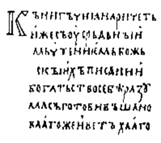 1.2 Азбука Константина и кириллическое письмоРукописи Х и XI веков написаны двумя разными азбуками. Одни написаны кириллицей, другие - глаголицей. Но какая из этих двух азбук древнее? То есть, каким письмом были написаны несохранившиеся рукописи кирилло-мефодиевских времен? Целый ряд фактов указывает на то, что более древней азбукой следует считать глаголицу. Древнейшие памятники (в том числе «Киевские листки») написаны именно на глаголице, причем написаны более архаическим языком, близким по фонетическому составу языку южных славян. На большую древность глаголицы указывают и палимпсесты (рукописи на пергамене, в которых старый текст соскоблен и по нему написан новый). На всех сохранившихся палимпсестах соскоблена глаголица, и новый текст написан на кириллице. Нет ни одного палимпсеста, в котором была бы соскоблена кириллица и по ней написана глаголица. Есть и другие факты, свидетельствующие о большей древности глаголицы. Итак, в современной славистике уже никто не сомневается в том, что ученые мужи Константин Философ (после принятия монашества Кирилл) и его брат Мефодий «переложили» звуки славянского языка на пергамент с помощью той азбуки, которую сегодня принято называть глаголицей. Позднее (по-видимому, на соборе в Преславе, в столице болгарского царя Симеона в 893) появилась кириллица, которая со временем вытеснила глаголицу во всех славянских странах, за исключением Северной Далмации (адриатическое побережье), где хорваты-католики продолжали писать глаголицей вплоть до конца прошлого столетия. В кириллице буквы имеют более простую и ясную для нас форму. Какая азбука была изобретена Константином, мы не знаем, но именно кириллица явилась основой нашего русского алфавита. Само слово «азбука» произошло по названию первых двух букв кириллицы: Аз и Буки. Начертания букв глаголицы так своеобразны, что наглядного сходства между ней и другими алфавитами — нет. Глаголица была распространена среди западных славян, но постепенно почти везде ее вытеснил латинский алфавит. Самые древние книги, написанные глаголицей, дошли до нас из XI века. Образцом для написания букв кириллицы послужили знаки греческого уставного алфавита. Первые книги на кириллице также написаны уставом. Устав — это такое письмо, когда буквы пишутся прямо на одинаковом расстоянии друг от друга, без наклона - они как бы «уставлены». Буквы строго геометричны, вертикальные линии, как правило, толще горизонтальных, промежутка между словами нет. Древнерусские рукописи IX - XIV веков написаны уставом (Приложение 1). С середины XIV столетия получил распространение полуустав, который был менее красив, чем устав, зато позволял писать быстрее. Появился наклон в буквах, их геометричность не так заметна; перестало выдерживаться соотношение толстых и тонких линий; текст уже делился на слова (Приложение 2). В XV веке полуустав уступает место скорописи (Приложение 3). Рукописи написанные «скорым обычаем», отличает связное написание соседних букв, размашистость письма. В скорописи каждая буква имела множество вариантов написания. С развитием скорости появляются признаки индивидуального почерка. Письменность русскими была воспринята от соседней Болгарии — страны, принявшей крещение на сто с лишним лет раньше Руси. О том, что письменность проникла на Русь до принятия христианств